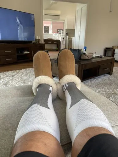"I travel for work almost every week, and sitting through long flights used to make my legs feel stiff and swollen. I honestly thought that was just something I had to live with. Then I gave these socks a try, and the difference was noticeable from the very first trip.